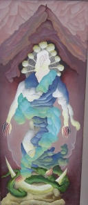 billowy forms and wears a crown of ten silver spheres a reference to the ten sephirah of the Tree of