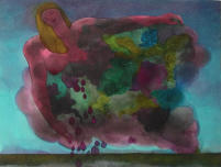 Droplets of fluid coalesce and fall from the body of this female figure who herself emerges from the