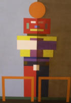 Oil on canvas. 48 x 34in. (122 x 86cm.)Signed, titled and dated verso.ProvenanceSotheby’s, studio sale, 24 April 1985, lot 562, ill. b/wHarry Langdon.FIFA.The National Football Museum.ExhibitedLondon, New Burlington Galleries, 1954, no. 145.Preston, the National Football Museum, 2008.Hartlepool, Art Gallery, 2009.The painting once belonged to the journalist, Harry Langdon, who most probably purchased it at the studio sale in 1985. Langdon collected football memorabilia and football-related art, and sold his collection to FIFA, which then sold the collection to the National Football Museum as the basis for its collections.In 1953 the Football Association marked its 90th anniversary with a competition and exhibition called ‘Football and the Fine Arts’. With the support of the Arts Council the aim was to ‘convey something of the rich and exciting opportunities that football can offer the artist.’ From 1,710 entries from artists all over the UK, the judging panel, which included the then Directors of the Tate Gallery and the National Gallery, selected 150 works for inclusion in the final exhibition. They also awarded a number of prizes. The first prize was awarded to L.S. Lowry for Going to the Match. It is not known whether Colquhoun actually entered the competition, but her painting was not amongst those exhibited.In a letter to me dated 14th July 2003, Trevor Dannatt, the distinguished architect, wrote:I remember that she consulted me about a ‘Football’ painting competition she was going in for. I was rather amused as she wished to make the goalposts a different proportion, (more like a croquet hoop!) did I think it would matter? I think I said in this context it probably would.Evidently, Colquhoun did not take the advice. The imagery is strikingly similar to that in the Maze Hill murals, especially Crucifixion, although here the inspiration is secular. It has the overall effect of a totemic figure towering over a pair of diminutive goalposts.Colquhoun’s title probably refers to the famous 1953 FA Cup final between Blackpool and Bolton Wanderers in which Stanley Mathews finally won an FA Cup winners’ medal. It has been pointed out (Ray Physick, personal communication) that entry for the competition closed before the Cup final was played. On the other hand, It is not known when Colquhoun gave the painting its title.