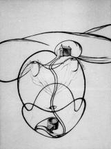 Ink drawing. 16 x 12¼in. (41.5 x 31.5cm.) (ss)ProvenanceNT then the Royal Cornwall Museum, Truro. ExhibitedLondon, Mayor Gallery, 1947, (drawings), no. 14. Penzance, Newlyn Gallery, 1976, no. 41. St. Ives, Tate Gallery, 2009.LiteratureRatcliffe, 2007, ill. b/w pl. 41.The technique is superautomatism. Colquhoun refers to this work in The Living Stones: Cornwall. In a passage dealing with her response to the ancient landscape around Brane, Cornwall, she invokes the memory of St. Euny:Her strange powers, unused, seemed to hover about the grey hill, the unchannelled water, the rank leaf. A presence that had once been drawn back into soil, weather and plant, to become one of the ‘self-born mockers of man’s enterprise.’ I expressed in an ink drawing called Interior Landscape something of this semi-human entity who still pervades the place. (p. 58)St Euny was a fifth century saint who is said to have arrived in Cornwall from Ireland. His feast day is the first of February, the pagan festival of Imbolc. Imbolc is a time of purification and rebirth, traditionally celebrated at holy wells. St. Euny is usually regarded as a male, although in the passage quoted above, and in the drawing, Colquhoun clearly identifies her as female.Naturalistically drawn objects that include a well, a temple and pitchers of water are features that lie both on and within a more abstract landscape formed of curving sweeping arcs. The objects can be read as both sensory organs and as female body parts. The pitchers of water form eyes/breasts, the well both mouth and vagina. They are linked by lines that are paths, vessels and nerves.