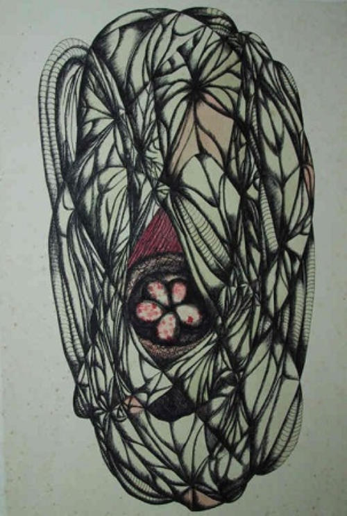 This is one of the few super-automatist drawings in which the artist has developed a naturalistic