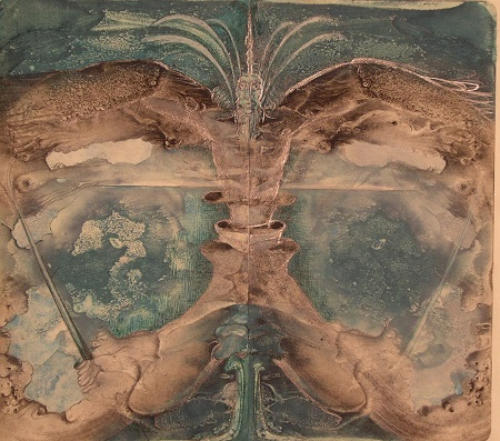 The technique is stillomancy. The work is datable to ca. 1971 in common with other works of gods and